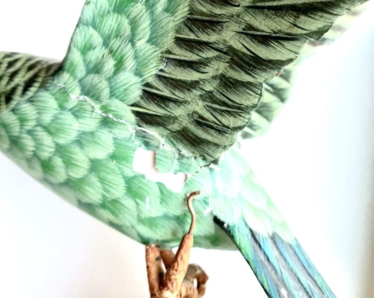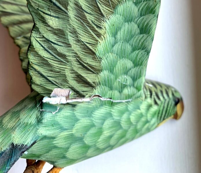 Specialty Repairs A client came to me with a pair of wooden decorative birds that, over time, had suffered wing damage. While I’m not an ornithologist, I am particular about color/product matching and managed to pull off some delicate repairs on these beauties.